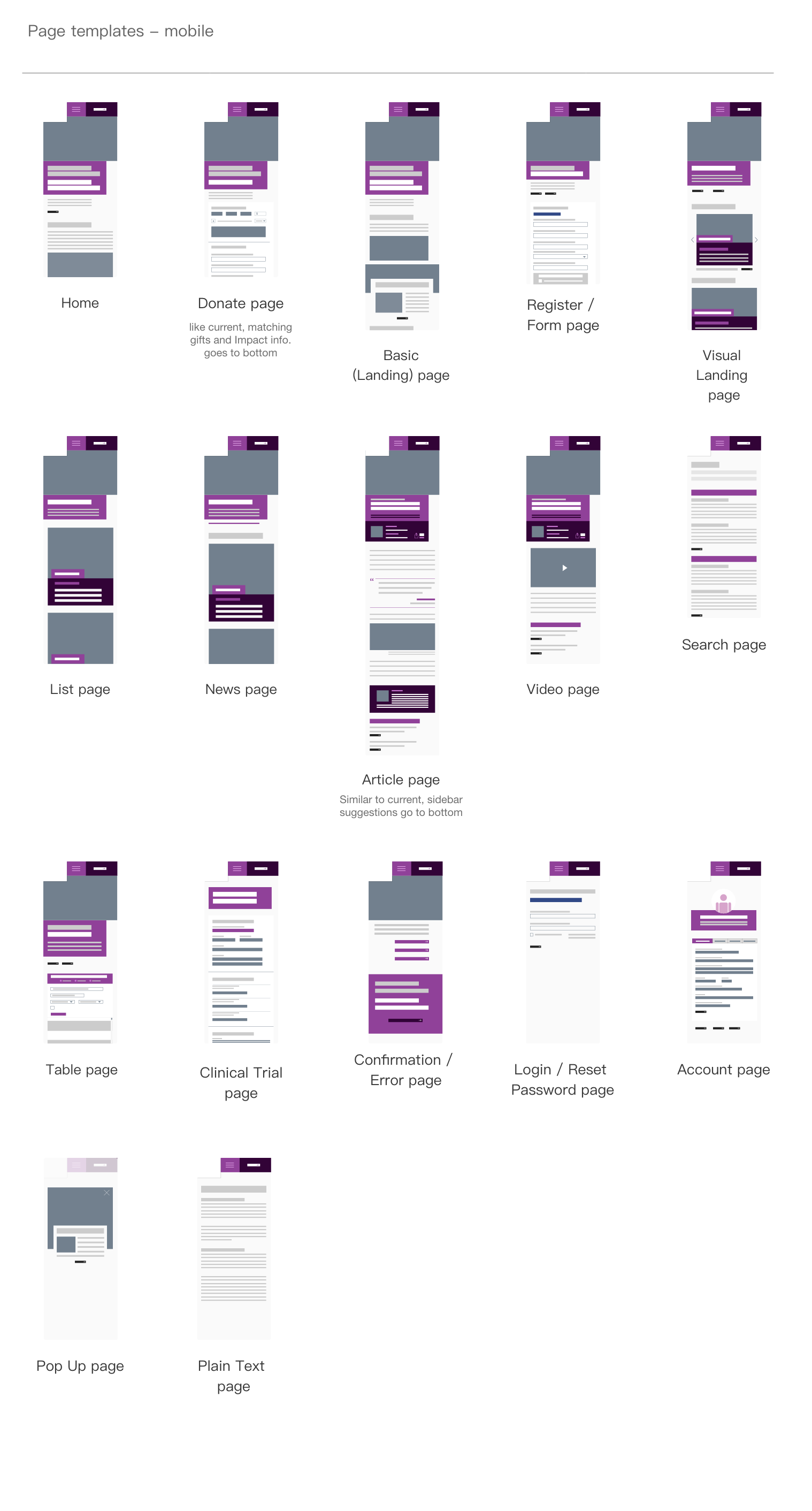 Personas and journey maps for key workflows (donating, learning about research, subscribing to updates, participating in events)